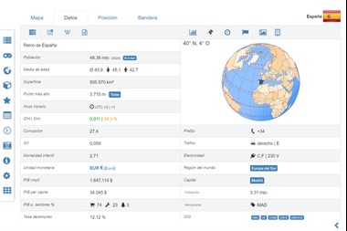 Este aplicación educativa es divertido para todo el mundo si los niños, adultos o personas mayores y profesores. Atlas mundial y enciclopedia de país con datos estadísticos, tales como crecimiento demográfico, tasa de desempleo, edad mediana, Producto Interno Bruto (PIB) por sector y otras figuras claves.