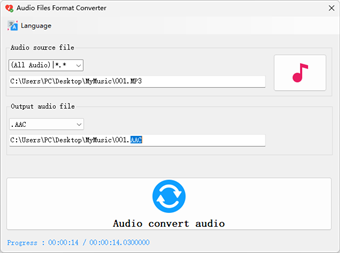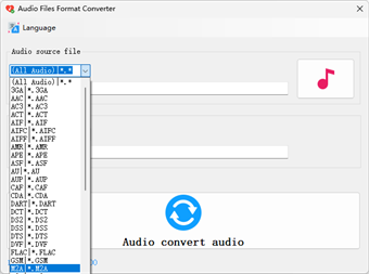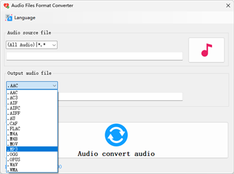 Conversion target format: MP3,WAV,WMA,AAC,AC3,AIF,AIFF,AIFC,AU,CAF,FLAC,M4A,M4B,MOV,OGG,OPUS