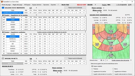 Después de un juego, los datos de las estadísticas se pueden exportar a un archivo de Excel, que se formateará correctamente y contendrá hojas sobre la puntuación and individual estadísticas, estadísticas avanzadas, estadísticas de tiempo de embrague, puntuación del cuadro por grupos de jugadores, accion por accion para equipos y para cada jugador, y una gráfico de puntuación.