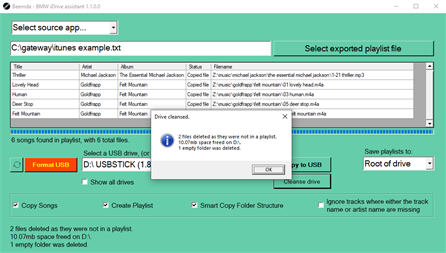 Beemda can also help you manage your USB drive. It's clean function scans and removes any music files that aren't in a playlist.