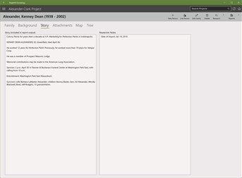 BegatAll es una manera fantástica de mantener su investigación e historia familiar seguras. Importe su GEDCOM desde otras herramientas de ascendencia populares y ahorre fuera de su entorno de nube. ¡BegatAll es una gran alternativa al pago de tarifas mensuales por almacenamiento y acceso a la investigación! La versión 3.0 es una aplicación de genealogía completa que proporciona integración en herramientas de investigación populares basadas en la web, búsqueda rápida, edición, informes y más. BegatAll presenta su historia familiar con vistas de árboles fluidas y "en vivo" y soporte de medios para aquellas imágenes que describen la personalidad única de los miembros de su familia. BegatAll te permite crear más que un registro escrito. Únase a otros usuarios en la creación de un árbol genealógico accesible para compartir con familiares y amigos. Genere archivos de informe que se puedan abrir en cualquier navegador web.