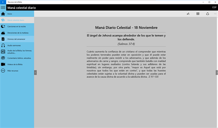 Recursos disponibles en más de 10 idiomas Estudio gratuito Biblia cristiana Recursos incluye: - Daily Escritura (un diario de las Escrituras con los comentarios). - Canciones en la noche (una escritura a diario con los comentarios). - Devociones mañana - Himnos de la Aurora (uno-trescientos sesenta y uno). - Recursos Audio - Audio Biblia, Biblia Estudios de audio sobre diversos temas, más de 1000 himnos cristianos - Sermones de Audio - más de 15.000 sermones cristianos sobre diferentes temas. Usted puede verlos por categorías o buscar un tema o representante. - Videos de la Biblia - más de 150 presentaciones de vídeo en diferentes temas - Libros de estudio bíblico, comentarios