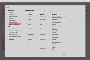 Bookmark Audio makes information in recordings or music instant accessible by using bookmarks. No more searching for the right position just click the bookmark and the needed information is available.