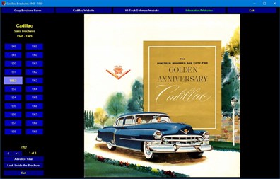 Cadillac Sales Brochures 1948 -1969 is a comprehensive collection of Cadillac sales brochures that chronicle the incredible history of the "Cadillac of Cars". Every page of each piece of literature allows you to zoom in to read all the details for each year. Check out the colors, the specifications, options, photos, sales pitches and much more as presented in each catalog. A must have for any classic Cadillac owner or enthusiast!