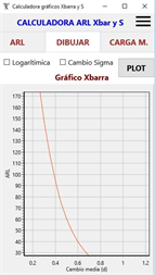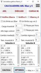 Esta aplicación calcula el ARL del los gráficos Xbarra, S, y uso conjunto de Xbarra y S, para distintos cambios en la media y/o en la variabilidad. Muestra donde hay que poner los límites de control en los gráficos anteriores para un valor de ARL bajo control