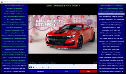 Camaro Commercials and Videos Volume 3 is a presentation of 50 more TV commercials and videos produced by Chevrolet to market the Camaro line to the world. This versio0n picks up where Volume 2 left off and continues to showcase the latest Camaro SS, LT1, COPO and other incredible Camaro performance vehicles and more. This fantastic collection will entertain you for hours.