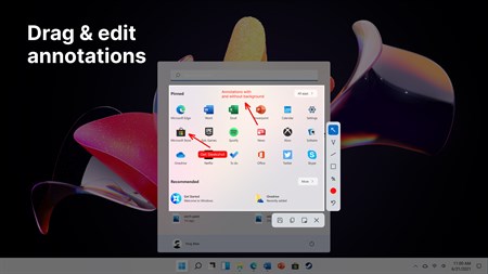 Capturas de pantalla con texto y flechas en un diseño moderno de Windows 10/11. Muchas funciones útiles como: texto editable, lápiz suavizado.