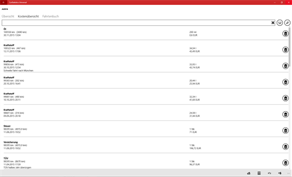 To do this you can create cars, cost categories and assign costs to a car. In the overview of your car, you will see an apportionment of costs on the various categories within the last two years. It is also possible to display saved statistics here. Furthermore, you can browse your costs so that, for example, you can find out when you have carried out which repair.