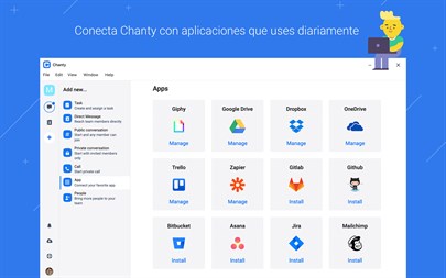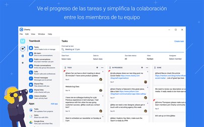 Chanty ayuda a los equipos a ser más productivos con una interfaz limpia y una experiencia de usuario fluída. Un historial de mensajes ilimitado, gestor de tareas, uso compartido de archivos, tablero kanban y notificaciones avanzadas para organizar y ahorrar tiempo de tu día.