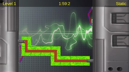 Slide and rotate tiles to complete a circuit between two terminals. 40 levels of challenging puzzles. Higher levels include multiple terminals and puzzles where you must complete two possibly overlapping circuits. Keeps best time for game and each level. Can repeat levels to improve level and total time.