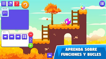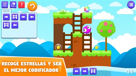 Toma los primeros pasos en la codificación y profundiza en el mundo de Aurora - un fuzzball totalmente amable que necesita tu ayuda para volver a casa. Entrena tu cerebro y resuelve rompecabezas de física complicada usando sólo comandos de programación. Guía a Aurora a través de fascinantes y coloridos niveles cada uno de ellos siendo un desafío aún más lógico. Diferentes elementos del rompecabezas como plataformas de vuelo, puentes móviles, escaleras y portales se introducen gradualmente para hacer la programación aún más divertida. Los hermosos gráficos, sonidos y mensajes graciosos en el juego mantienen a los niños enfocados y listos para aprender.