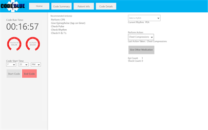 Explore the difference between your current code documentation and what CodeBlue can do for you! CodeBlue allows for accurate and fast documentation of events that take place during cardiopulmonary (CPR) resuscitation. It also provides multiple accurate timers and has the latest algorithms built in to help prompt what action should be considered next.