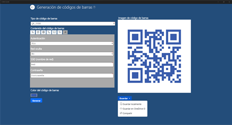 COM-SCAN puede generar códigos de barras Aztec, Data Matrix, PDF-417 y "QR Code" desde un archivo vCard o desde texto libre.