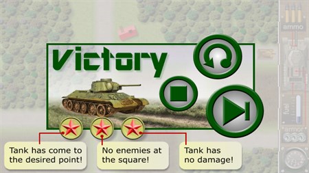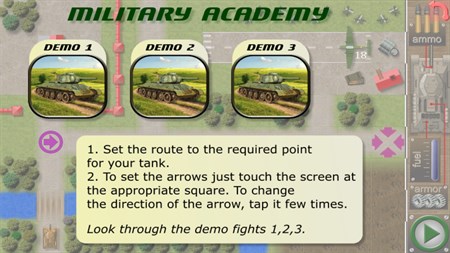 Сombat a lot full - logic game with the ability to maneuver the tank T-34. In this tactical puzzle you need to plan your tank activity and come unhurt to a given point. Arrange the playing field arrows indicating the moving direction and points of fire, then press start button and watch the battlefield on your phone. The game includes 96 unique levels in which you have to solve a variety of tactical missions. Test your tactical ability and pass all the levels on three stars!