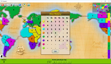 Conquest is a version of the classic board game where you combine risk and strategy to conquer the world. You can play solo or multiple human games against the randomly selected computer controlled opponents, each with their own personality and strong artificial intelligence.