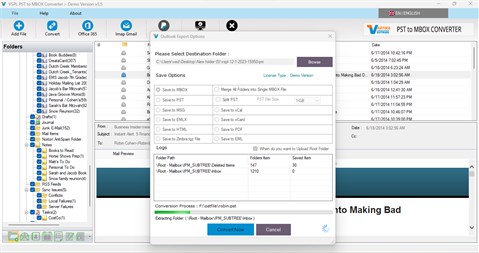 VSPL PST to MBOX Converter is a reliable Converter Tool that helps to safe conversion of MS Outlook data (.PST) files to Thunderbird (MBOX) File, Spicebird (MBOX) File, SeaMonkey or Netscape mailbox (MBOX). The PST to MBOX Converter Software gives the option to browse through the system and select The Outlook PST file and that emails are to be convert into MBOX File Format. Converted MBOX File useful for Thunderbird, Spicebird, Apple Mail, Netscape Email client.