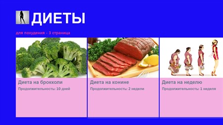 Диеты на три дня, на неделю, на три и более месяцев. Диеты от известных людей. Каждая диета содержит описание, точное меню или рекомендации по составлению рациона. Подберите себе диету. Каждый человек индивидуален, поэтому общие рекомендации по диетам всем давать нельзя. У каждого из нас свои особенности и заболевания. Поэтому не стоит соблюдать программу похудения, рекомендованную подругой или рекламой. Если диета выбрана верно, то у Вас повысится работоспособность, Вы станете энергичнее, улучшится настроение. Во-первых, по набору продуктов диета должна быть разнообразной и сбалансированной. Во-вторых, диета желательно должна быть вкусной, так Вам будет легче ее выдержать. В-третьих, очень важно настроиться на диету морально, Вы должны верить в результат и понимать, что для достижения цели потребуются усилия. Будьте здоровы и красивы!