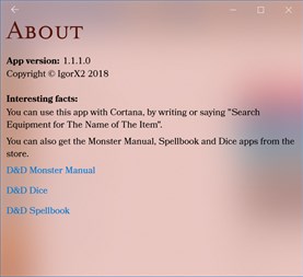 A equipment search app for Dungeons and Dragons role-playing game, 5th version.