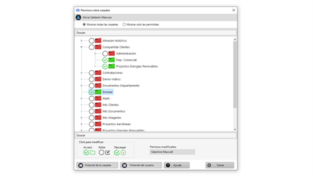 Sin configuraciones y sin depender de discos virtuales o sincronizadores. Dataprius proporciona un entorno integrado, basado en un árbol de carpetas. Cada usuario solo visualiza y trabaja sobre aquellas carpetas que le han sido permitidas para desarrollar su actividad.