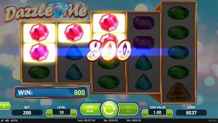 Ladies and gentleman, please get ready to be dazzled by glitzy new video slot Dazzle Me! This brilliant casino game provides an unforgettable experience with glittering gems appearing on the radiant reels! Dazzle Me is a video slot with 5 distinctive reels and a dazzling 76 bet lines. The game features Dazzling Wild Reels, Free Spins and LinkedReels.