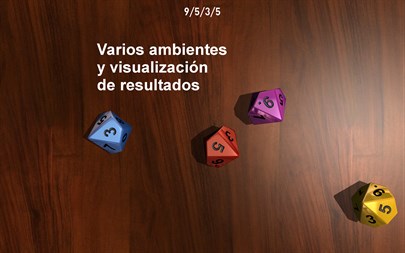 Contiene un conjunto completo de dados realistas en 3D para jugar tus juegos de rol favoritos. Contiene un poderoso motor de física 3D. Gráficos mejorados que contienen múltiples ambientes y texturas para dados.