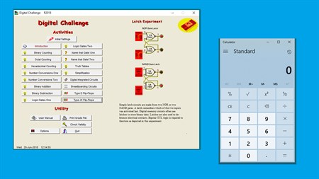 Learn or teach digital basics and digital electronics the easy way! Learn by doing. Quickly learn digital logic and computer numbering systems. The lessons can be reused until you master the concepts being presented. Activities are changed on each use so that students can’t simply memorize answers. Student work is graded and scored immediately. Scores can be stored in disk files or printed in the form of certificates.