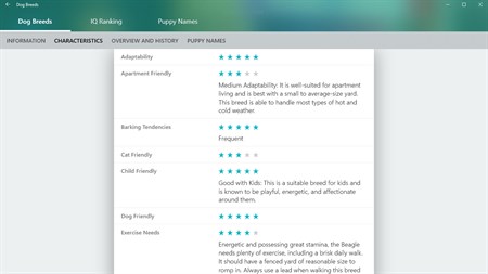 Dog Breeds database contain more than 360 dog breeds and their info. Dog lovers find a lot of useful information about their pets. Information about dog contain history, description, health, temperament, appearance.