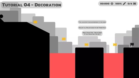 Simple Main Menu Items To Collect Danger Zone Breakdown of Levels into Chapters Level Unlock System with collected stars Progress Save System Sounds and Music