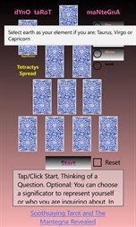 The dYnO taRoT maNteGnA uses the Tetractys Spread with the Mantegna deck to produce unique divinations. Using this ancient deck reveals more about your inner self that can expose obstructions that may impede your true life path. This method peak's your philosophical intellect and challenges your fixed institutions on how things work. It also has a significator selection which uses a Zodiac method to choose this representative for the Querent. IE: Fire element: Aries, Leo, Sagittarius. Air: Aquarius, Gemini, Libra. Water: Pisces, Cancer, Scorpio. Earth: Taurus, Virgo, Capricorn. This method is suitable for any age.