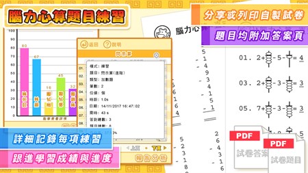 除可透過程式進行題目練習,製成的試卷PDF亦可以列印或電郵用作練習用途。