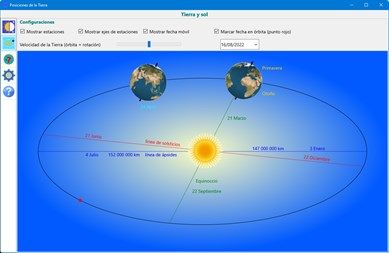2. Tierra y Sol Esta función de animación muestra cómo la tierra orbita alrededor del sol. Durante su órbita, muestra la fecha y muestra una imagen fija en el cambio de estaciones. También puede ingresar una fecha para mostrarla como un marcador en la órbita.