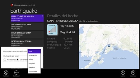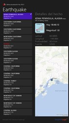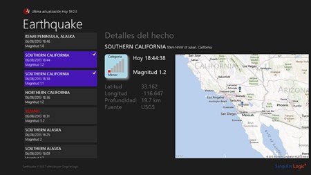 ¿Se han preguntado alguna vez con que frecuencia nuestro planeta sufre terremotos? Desde que el planeta tierra se ha creado hace aproximadamente 4,5 billones de años, ha sido expuesto en procesos naturales y mecanismos dinámicos entre el sistema solar y la tierra. Diariamente hay cientos de terremotos y miles durante el año. Solo un pequeño porcentaje de estos hechos se caracterizan de grande intensidad capaces de causar daños extensos en una área. Podréis ver los últimos terremotos, su posición en el mapa mundial y informaciones sobre ellos. La aplicación es gratuita, disponible para todos los dispositivos con Windows 8.
