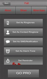 Características disponibles: - Se puede establecer como tono y asignarlo a los contactos - Se puede establecer como sonido de alarma - Se puede establcer como tono de mensaje - Se puede guardar y compartir en redes sociales o enviar por email Compatibilidad de dispositivos: Esta aplición ha sido probada en los siguientes Windows dispositivos: HTC 8S, HTC 8XT, Huawei Ascend W1, Huawei Ascend W2, Nokia Lumia 520, Nokia Lumia 521, Nokia Lumia 525, Nokia Lumia 620, Nokia Lumia 625, Nokia Lumia 720, Nokia Lumia 810, Nokia Lumia 820, Nokia Lumia 822, Samsung ATIV Odyssey, HTC 8X, Nokia Lumia 920, Nokia Lumia 925, Nokia Lumia 928, Nokia Lumia 1020, Nokia Lumia 1320, Samsung ATIV S, Samsung ATIV S Neo, Nokia Lumia Icon, Nokia Lumia 1520, Samsung ATIV SE.
