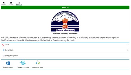 The App lists the latest notifications published in the official Gazette of Himachal Pradesh. The App locally stores index for about 3 latest Gazettes and its all notifications. The individual notifications will open through web browser in .PDF format, when you click on these. All Gazettes and Notifications published after 01-August-2007 are available online at http://rajpatrahimachal.nic.in