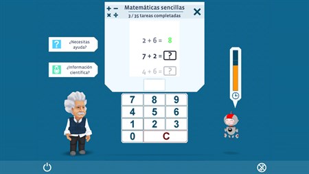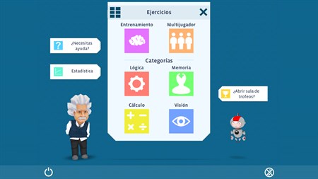 Albert Einstein y su simpático ayudante Robo te acompañarán durante el juego. Estarán a tu lado cuando los necesites y te explicarán los diferentes ejercicios con ilustraciones de la base científica aplicable. Te motivarán para que sigas adelante y te preocupes por tu condición cerebral.