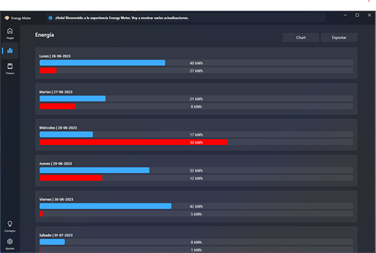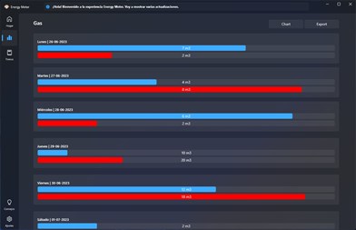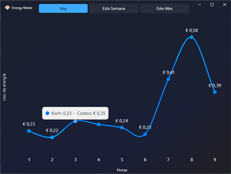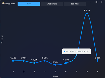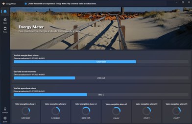 Energy Meter es una aplicación completa e innovadora que le permite monitorear y controlar su consumo de energía. Energy Meter realiza un seguimiento de la cantidad de agua, gas y energía que usa. Ya sea que desee reducir su huella de carbono o simplemente quiera mantener su factura de energía bajo control, Energy Meter es la solución que necesita. Con una interfaz de usuario intuitiva, actualizaciones en tiempo real y alertas personalizadas, Energy Meter le brinda una visión completa y control sobre su uso de energía, gas y agua. ¡Comience a ahorrar dinero y recursos con Energy Meter hoy!