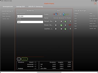 No matter whether you play cards with your friends, meet regularly for a bowling evening or organize other group events. EniCube helps you to organize this game round. Example card game round: After a round has been played, the points are determined and assigned to the loser or losers. By default, one point corresponds to one cent, but you can set this individually. For example, a missing day fee of € 2.00 can be charged for participants who are absent on this match day. This results in an amount to be paid for each participant at the end of the game round. A participant's outstanding amounts can be entered quickly and easily using the corresponding function. Example bowling evening: For example, a thrown poodle can be charged at € 0.50. If a participant throws "all nine", all other participants can be charged an amount of € 0.20. For example, a missing day fee of € 2.00 can be charged for participants who are absent on this match day. This results in an amount to be paid for each participant at the end of the game round. A participant's outstanding amounts can be entered quickly and easily using the corresponding function. The "INFO" function gives you an overview of the outstanding amounts of individual participants or the total balance for the game day or the entire round at any time.