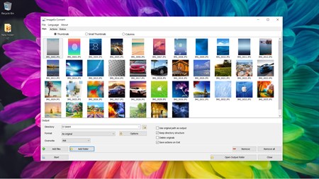 ES image Converter es un programa para editar, convertir y mejorar sus imágenes en un modo por lotes. Editar imagen: cambiar el tamaño, rotar, recortar, recortar automáticamente, voltear, convertir a colores. Añadir texto, marca de agua. Convierta de más de 100 formatos de imágenes a 18 formatos de imágenes, incluidos JPEG, PNG, TIFF, BMP, JPEG2000. Ajuste los colores: brillo, contraste, saturación, intensidad, temperatura, RGB, HUE, etc. Aplique efectos: filtros, lentes, mapeo de relieve, onda, desenfoque, nitidez, etc. Se admiten más de 35 acciones. La aplicación tiene una interfaz clara; También puede obtener una vista previa de todos los cambios antes de procesar.