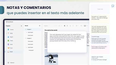 COMENTARIOS Y NOTAS Cree notas aparte del texto principal; luego podrá arrastrarlas y soltarlas en el documento principal e integrarlas en el texto si es necesario.