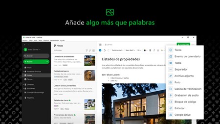 ORGANÍZATE • Gestiona tu lista de tareas pendientes con Tareas—establece fechas de finalización y recordatorios, para que nunca se te pase un plazo. • Conecta Evernote y Google Calendar para unir tu agenda y tus notas. • Consulta de un vistazo la información más relevante en tu panel de Inicio. • Crea libretas independientes para organizar recibos y facturas. • Encuentra lo que necesitas de manera rápida: la potente búsqueda de Evernote puede incluso encontrar texto en imágenes y notas escritas a mano. ACCEDE DESDE CUALQUIER LUGAR • Sincroniza tus notas y libretas automáticamente en cualquier ordenador, teléfono o tableta. • Empieza a trabajar en un dispositivo y continúa en otro sin perder el ritmo.