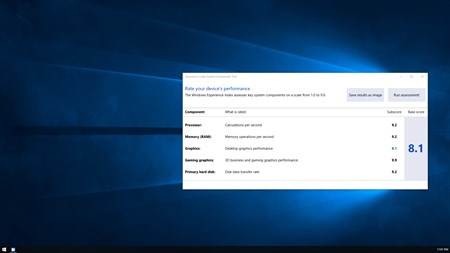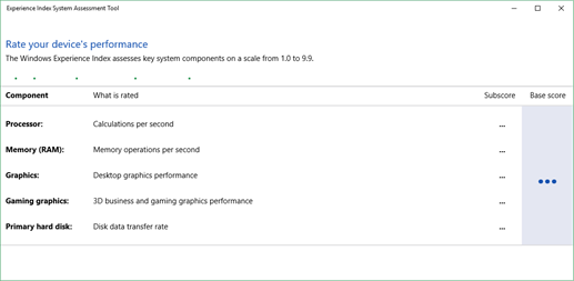 This Experience Index System Assessment Tool is a replacement for the graphical user interface (GUI) of the Windows System Assessment Tool (WinSAT) originally introduced in Windows Vista , but removed from Windows 8.1 and later versions.