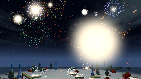 Firework party takes place in an empty parking lot. Different types of fireworks appear at random locations. The player can ignite these fireworks by clicking them. Each firework has a different special effect. Fireworks available: Fountains Rocket fireworks Finale fireworks Fire crackers Exploding party poppers Spinner This app is designed for young children. The fireworks obey the laws of physics and can be knocked over or hilariously kicked into the air before being ignited.