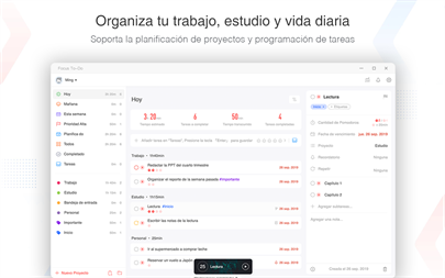 Esta brinda en un solo lugar la Técnica Pomodoro y la Lista de Cosas por Hacer, usted puede captar y organizar tareas en su lista de cosas por hacer, comenzar el temporizador y enfocarse en su trabajo y estudio, crear recordatorios para tareas importantes y mandados, así como monitorear el tiempo gastado en el trabajo.