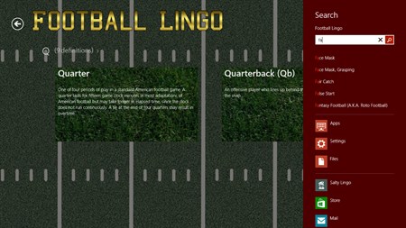 Search either in the app or from your Windows device's Start Screen to easily find out what any football term means.