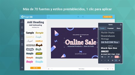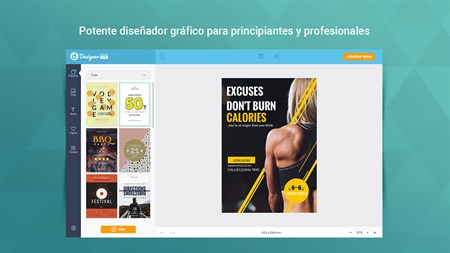 ----------------------------------------------- CARACTERÍSTICAS DESTACADAS ----------------------------------------------- Abundantes plantillas y recursos • Casi todas las plantillas de gráficos de redes sociales están cubiertas, incluyendo Portada/Post de Facebook, Arte/Miniatura de canal de YouTube, Portada de Google+, Encabezado de Twitter, Banner de Tumblr, Encabezado de correo electrónico, Post de Instagram y Gráfico de Pinterest. • Plantillas bien diseñadas para tarjetas, invitaciones, pósters, flyers, logotipos, anuncios de Facebook, tablas de clasificación y portadas de revista. • Más de 50 fuentes de texto y más de 15 estilos de texto prestablecidos que se pueden aplicar con un clic. • Más de 400 imágenes clipartprestablecidaspara elegir. • Más de 70 líneas y formas prestablecidas. • Llena el fondo con un color de relleno sólido/gradiente o con más de 40 patrones prestablecidos. • Añade fotos desde tu ordenador, Facebook o archivos de fotos online.
