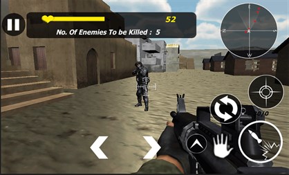 * Use Zoom button for Accurate Aim and zoom at the target enemy. * Use fire button to hit the enemies. * Use Jump button for jump. * Use Pick button for picking up Weapons. * Use Reload button for Reloading Weapons.