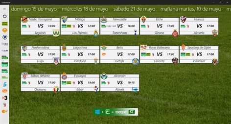 Averigua rápidamente a que hora y en que canal juega tu equipo favorito, simplemente busca por día o filtra a través de los diferentes canales deportivos. Simple y sencillo, para que llegues al pitido de inicio.