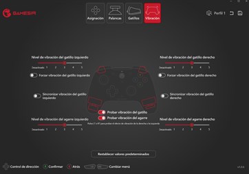El software GameSir Nexus permite una personalización más precisa del control. Cree perfiles del control asignando botones, retocando las diagonales del control direccional, haciendo ajustes en palancas y gatillos, y configurando el nivel de vibración. Guarde hasta tres perfiles y use el que prefiera para cada juego. El software también le permite actualizar el firmware del control.
