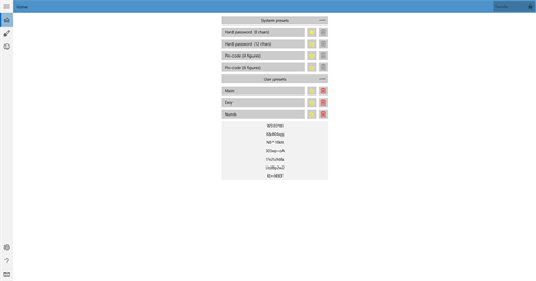 This application – is a highly customizable tool for generating passwords. Suitable both for those who need to create a password in a single click, and for those who need a lot of settings. Application features: - Create a password and a PIN using system and user presets; - Create a password by the parameters (length and the presence of different registers, numbers, special characters); - Create a password by the mask (specified at what point should be one or the other character); - Save your presets for password parameters and for mask for quick access to their creation from the home page; - Synchronization presets and settings on different devices (if they are attached to the same Microsoft account). This application is absolutely free and by the default does not show ads, but if you want to help the developers, then in the settings you can enable ads (rectangular banner at the bottom of the application) or donate us a small amount of money. About your wishes, suggestions and bugs report write in the application using the "Feedback" button.