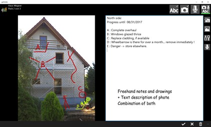 With GO4NOTES you can create, comment and organise photos, notes, and recordings, manage and assemble them in project files and share them - on the go or at home – also as a PDF file. It is essential for your job, your studies, and your hobby. Record e.g. lectures, bird sounds, or joyful moments. Document your travels, construction sites, flea market visits… anything, anywhere, anytime. You can do anything and make a note about it in any media that you choose. Share your memorable activities and projects easily with your friends or colleagues, via cloud or email. Edit the images by adjusting their size, highlight an areas, and/or mark something special. Assemble your data into project files or designed PDFs to share or print. “Do something noteworthy with go4notes.”
